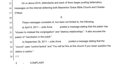 Try to click on the image to enlarge. It looks like the copy was not lined up properly when scanned – sorry about that. When Chuck recently amended the complaint, he added more “defamatory” phrases which came from this blog. I’ll post those soon.Off to choir to tinkle some ivories. Yes, life goes on even amidst a lawsuit.