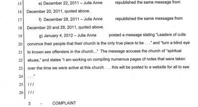 More power to you, Julie Anne. The church's complaint is just silly and I don't really see how the suit could be anything but dismissed as frivolous.Best,~janet~
