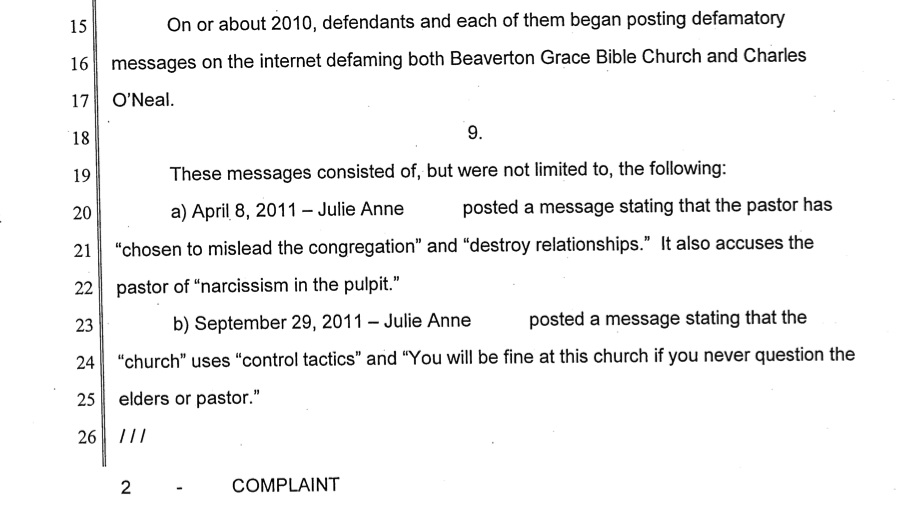 Some may be interested in seeing what Chuck O’Neal calls “defamation” in his lawsuit against me and 4 others. Although the filed complaint is public, I took screen shots and blocked out my last name and left out the other defendants. These are the original complaints that were filed against me.