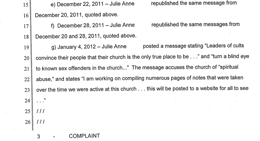 More power to you, Julie Anne. The church's complaint is just silly and I don't really see how the suit could be anything but dismissed as frivolous.Best,~janet~