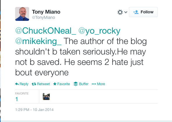 Someone sent me a link to another Twitter conversation that I forgot about. I posted it in a Storify so it’s easier to read: http://storify.com/DefendTheSheep/how-tonymiano-responds-to-article