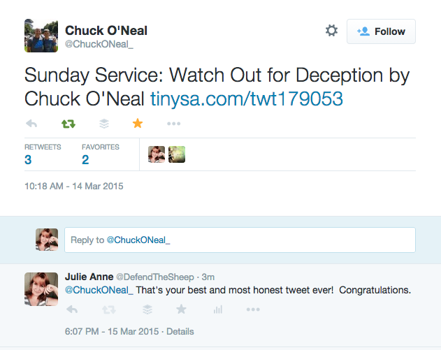 @ChuckONeal_ That's your best and most honest tweet ever! Congratulations.