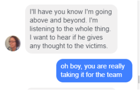 Not once through this entire broadcast does Swanson blame Larry Nassar for his acts of sexual assault. Instead, he proves that he continues to remain unsympathetic to victims of abuse by heaping shame and blame upon them. Un-freakin’-believable. Wow. Kathi, I am never going to ask you to do a K. Swanson post again. This about did me in.