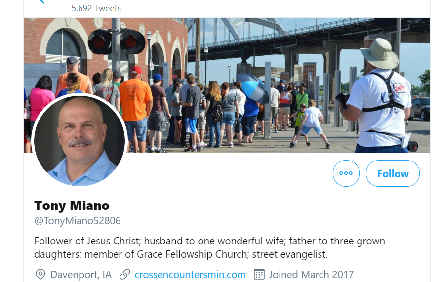 It’s been a while since I’ve done a post on Tony Miano, the street preacher. I’ve done quite a few posts on him in the past about his bully ways. He has been arrested twice overseas while doing street preaching. Some countries have rules about what you can and cannot say about gay people. Tony crossed the line and was taken into custody, and eventually released. I have quite a few issues with Tony.