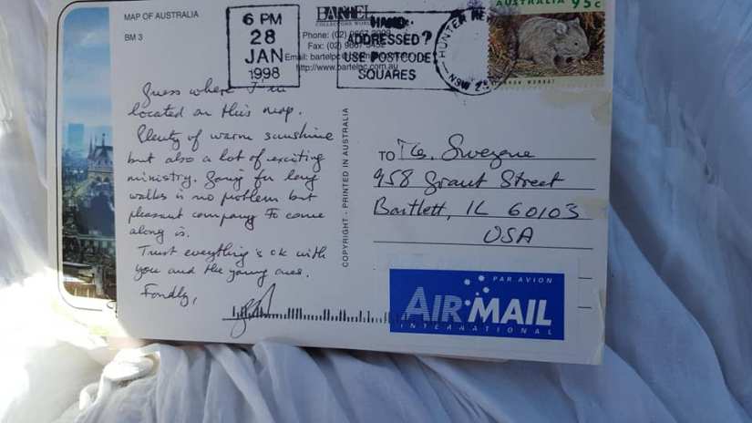 In 2017, Mark and I had another meeting with Chris Hurta and Scott Vaudrey. I was feeling at the end of my rope with so many things that have happened to me over the last few years, and I thought I needed some form of closure. I brought proof with me that time, three original postcards from Dr. B. and a letter he left in a book for me. I took photos of these, which I include below. I am very glad I did take those photos, because in the meeting I gave them to Scott, trusting that he would take them to the elders on my behalf. He took them.