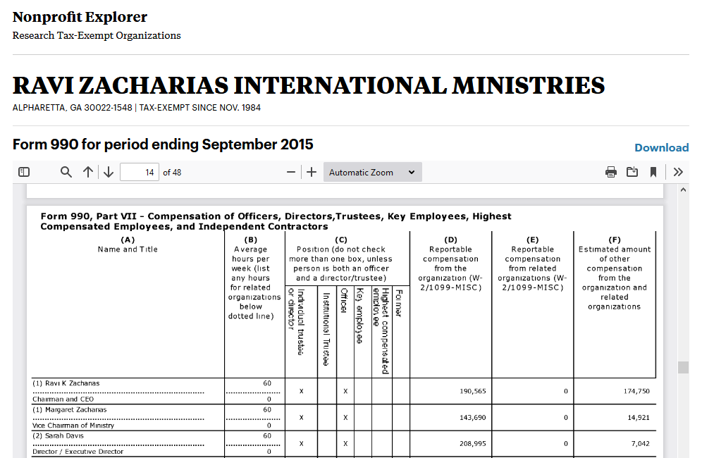 - RZIM Non-Profit Reclassification to “Church,” Finances, and Forms 990 (2018)