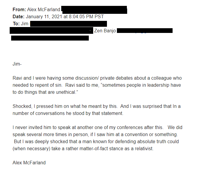 When RZ was alive, many of us raised Red Flags about his lying about his academic credentials. We were โblown offโ and ridiculed by many Christians for โblowing the whistleโ on his deceptions. In the academic world, his deceptions would have gotten him thrown out of any position immediately. The fact that he was able to lie about his credentials for decades, with no one in the Christian Industrial Complex calling him on it, leads me to not be surprised his sexual โissuesโ were actively hidden by the system…. a infamous NDA is a good example of this… RZ was still alive when many raised questions anout this, and again, were blown off…