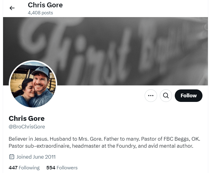 I don’t have much time for blog posts, but when something gets me worked up, I might just make the time and effort to report on it. Such is the case of Pastor Chris Gore of First Baptist Church in Beggs, Oklahoma.