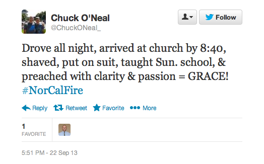 An earlier tweet said he had a 10-hr drive after attenting the #NorCalFire conference. So, he wants everyone to know: